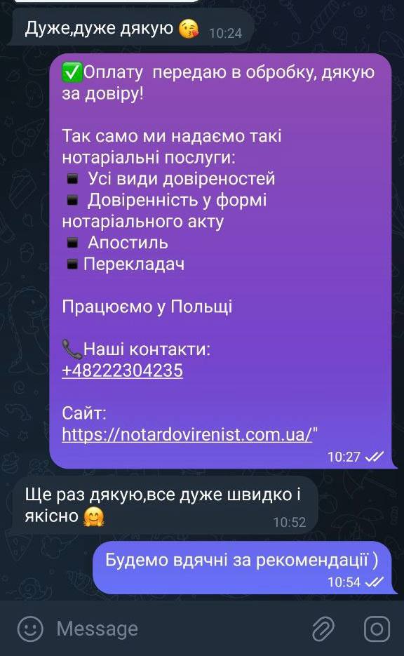Ви можете одразу дізнатися терміни та вартість послуги у меседжері